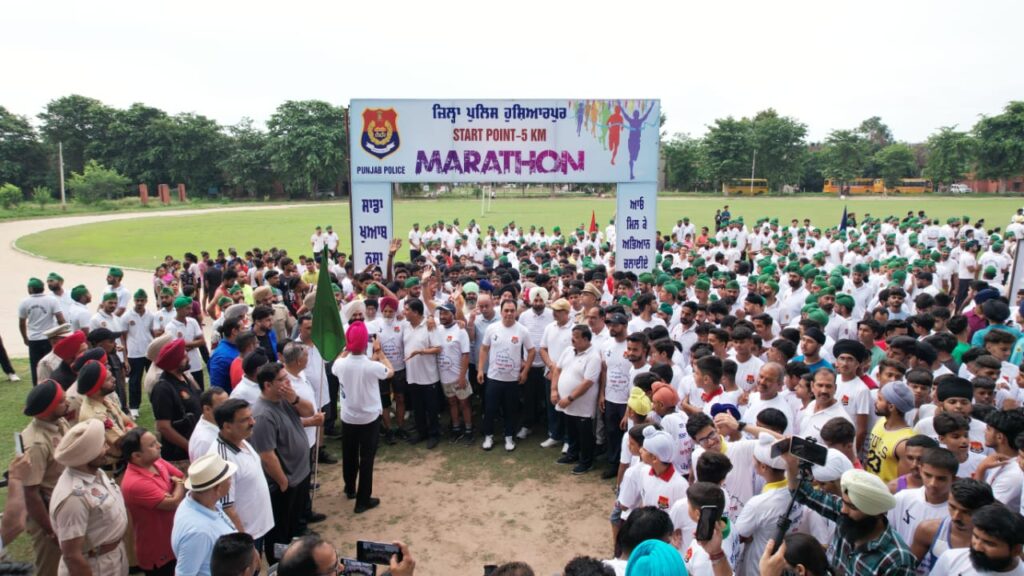 ਨਸ਼ਿਆਂ ਖਿਲਾਫ ਜਾਗਰੂਕਤਾ ਅਭਿਆਨ ਤਹਿਤ ਜਿਲ੍ਹਾ ਪੁਲਿਸ ਹੁਸ਼ਿਆਰਪੁਰ ਵਲੋਂ 5 ਕਿਲੋਮੀਟਰ ਮੈਰਾਥਨ ਕਰਵਾਈ ਗਈ
