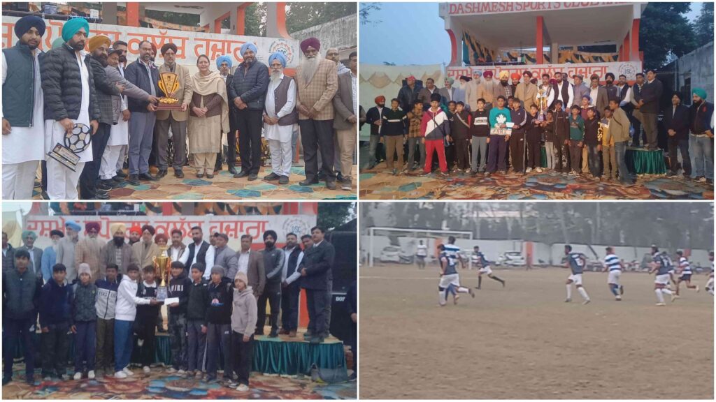 ਪਤਾਰਾ (ਪਰਮਜੀਤ ਸਾਬੀ) ਪਿੰਡ ਹਜ਼ਾਰਾਂ ਜਿਲਾ ਜਲੰਧਰ ਵਿਖੇ ਸਲਾਨਾ ਫੁੱਟਬਾਲ ਟੂਰਨਾਮੈਂਟ ਲਖਵੀਰ ਸਿੰਘ ਹਜਾਰਾ ਜੋ ਕਿ ਜਿਲਾ ਪ੍ਰੀਸ਼ਦ ਦੀਆਂ ਚੋਣਾਂ ਤੋਂ ਜਿੱਤ ਪ੍ਰਾਪਤ ਕਰ ਚੁੱਕੇ ਹਨ ਹਰੇਕ ਸਾਲ ਨੌਜਵਾਨਾਂ ਨੂੰ ਨਸ਼ਿਆਂ ਤੋਂ ਰਹਿਤ ਅਤੇ ਖੇਡਾਂ ਪ੍ਰਤੀ ਉਤਸ਼ਾਹਿਤ ਕਰਦੇ ਹਨ। ਮਿਤੀ 16-12-2025 ਤੋਂ 21-12-2025 ਨੂੰ ਫਾਈਨਲ ਮੈਚ ਕਰਵਾਏ। ਇਸ ਮੌਕੇ ਆਦਮਪੁਰ ਦੀ ਟੀਮ ਨੇ ਜਿੱਤ ਪ੍ਰਾਪਤ ਕੀਤੀ। ਇਸ ਮੌਕੇ ਆਦਮਪੁਰ ਹਲਕਾ ਇੰਚਾਰਜ ਆਮ ਆਦਮੀ ਪਾਰਟੀ ਸ਼੍ਰੀ ਪਵਨ ਕੁਮਾਰ ਟੀਨੂ ਮੁੱਖ ਮਹਿਮਾਨ ਤੇ ਵਿਸ਼ੇਸ਼ ਤੌਰ ਵਜੋਂ ਸ਼ਿਰਕਤ ਕੀਤੀ। ਇਸ ਮੌਕੇ ਲਖਬੀਰ ਸਿੰਘ ਹਜਾਰਾ (ਚੈਅਰਮੈਨ) ਅਤੇ ਐਨ. ਆਰ. ਆਈ ਸੰਗਤਾਂ ਦੇ ਸਹਿਯੋਗ ਨਾਲ ਹਰੇਕ ਸਾਲ ਦੀ ਤਰ੍ਹਾਂ ਇਸ ਸਾਲ ਵੀ ਫੁੱਟਬਾਲ ਦੇ ਟੂਰਨਾਮੈਂਟ ਕਰਵਾਏ ਗਏ। ਇਸ ਮੌਕੇ ਲਖਬੀਰ ਸਿੰਘ ਹਜ਼ਾਰਾਂ ਨੇ ਆਪਣੇ ਵੋਟਰਾਂ ਤੇ ਸਪੋਟਰਾਂ ਦਾ ਧੰਨਵਾਦ ਕੀਤਾ। ਉਪਰੰਤ ਉਹਨਾਂ ਨੇ ਕਿਹਾ ਕਿ ਸਾਡਾ ਪਹਿਲਾ ਤੋਂ ਇਹ ਨੌਜਵਾਨਾਂ ਨੂੰ ਕਹਿਣਾ ਹੈ ਕਿ ਖੇਡਾਂ ਪ੍ਰਤੀ ਨੌਜਵਾਨਾਂ ਨੂੰ ਨਸ਼ਿਆਂ ਤੋਂ ਰਹਿਤ ਅਤੇ ਖੇਡਾਂ ਪ੍ਰਤੀ ਪਿਆਰ ਕਰਨ ਦਾ ਸੰਦੇਸ਼ ਦਿੱਤਾ ਅਤੇ ਪਤਵੰਤੇ ਸੱਜਣ ਅਤੇ ਖਿਡਾਰੀਆਂ ਦਾ ਤਹਿ ਦਿਲੋਂ ਧੰਨਵਾਦ ਕੀਤਾ।