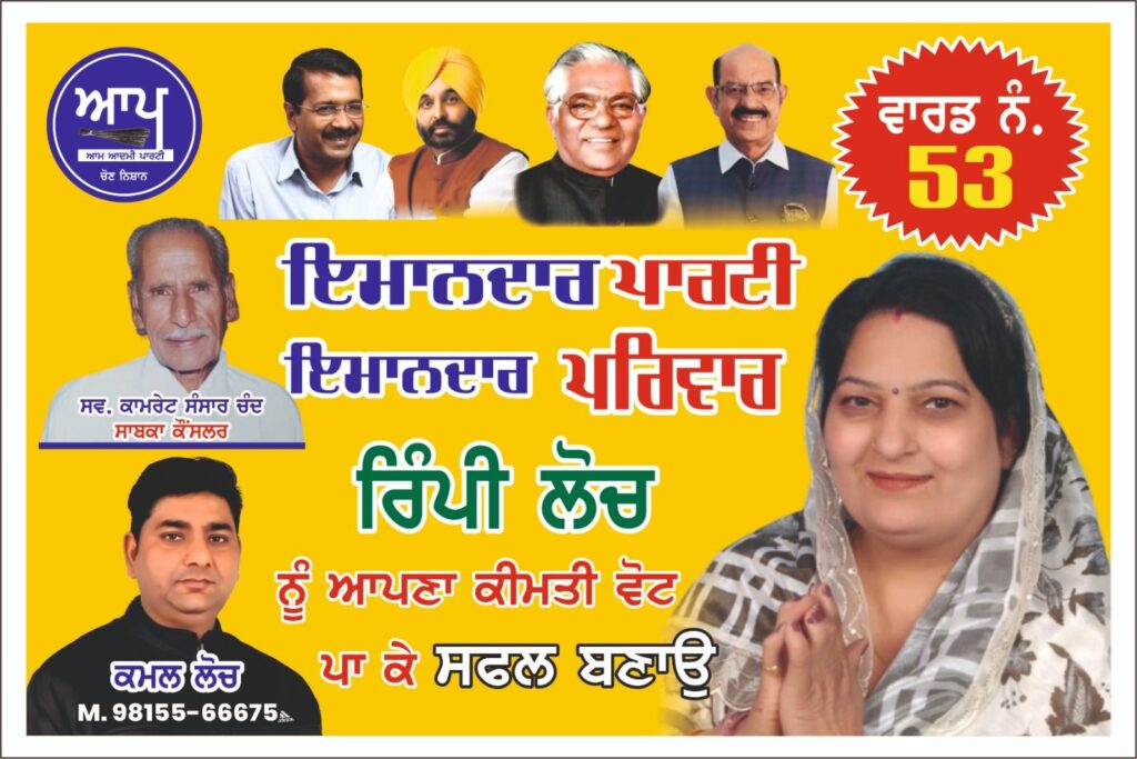 ਆਮ ਆਦਮੀ ਪਾਰਟੀ ਵਾਰਡ ਨੰਬਰ 53 ਰਿੰਪੀ ਲੋਚੀ ਮੰਦਰ ਚ ਟਿਕਿਆ ਮੱਥਾ ਤੇ ਲੋਕਾਂ ਦਾ ਮਿਲਿਆ ਸਮਰਥਨ