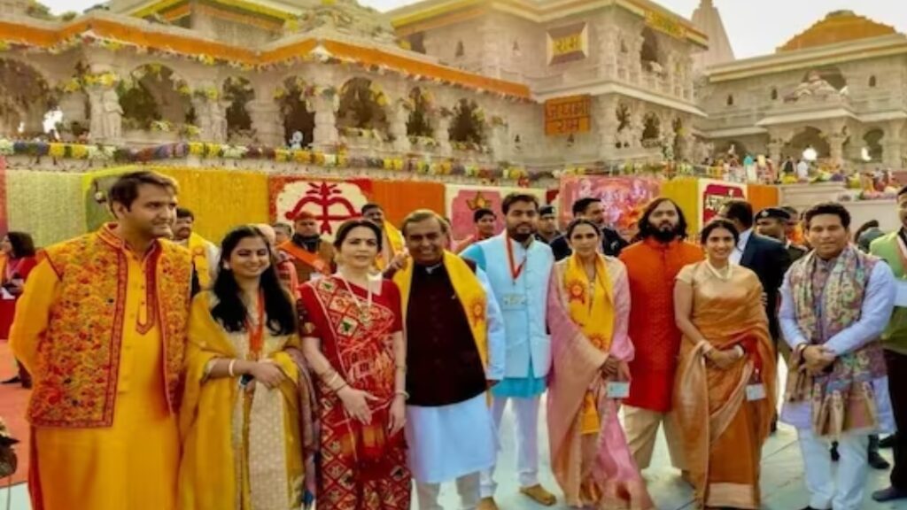 ਮੁਕੇਸ਼ ਅੰਬਾਨੀ ਨੇ ਆਪਣੀ ਪਤਨੀ ਨੀਤਾ ਅੰਬਾਨੀ ਅਤੇ ਬੱਚਿਆਂ ਦੇ ਨਾਲ ਸ਼੍ਰੀ ਰਾਮ ਜਨਮ ਭੂਮੀ ਮੰਦਰ ਵਿੱਚ ਪ੍ਰਾਣ ਪ੍ਰਤਿਸ਼ਠਾ ਵਿੱਚ ਸ਼ਿਰਕਤ ਕੀਤੀ। ਰਿਲਾਇੰਸ ਇੰਡਸਟਰੀਜ਼ ਦੇ ਚੇਅਰਮੈਨ ਮੁਕੇਸ਼ ਅੰਬਾਨੀ ਨੇ ਦੱਸਿਆ ਕਿ ਅੱਜ ਭਗਵਾਨ ਰਾਮ ਦਾ ਆਗਮਨ ਹੋਵੇਗਾ ਅਤੇ 22 ਜਨਵਰੀ ਨੂੰ ਦੇਸ਼ ਭਰ ਵਿੱਚ ਰਾਮ ਦੀਵਾਲੀ ਹੋਵੇਗੀ।