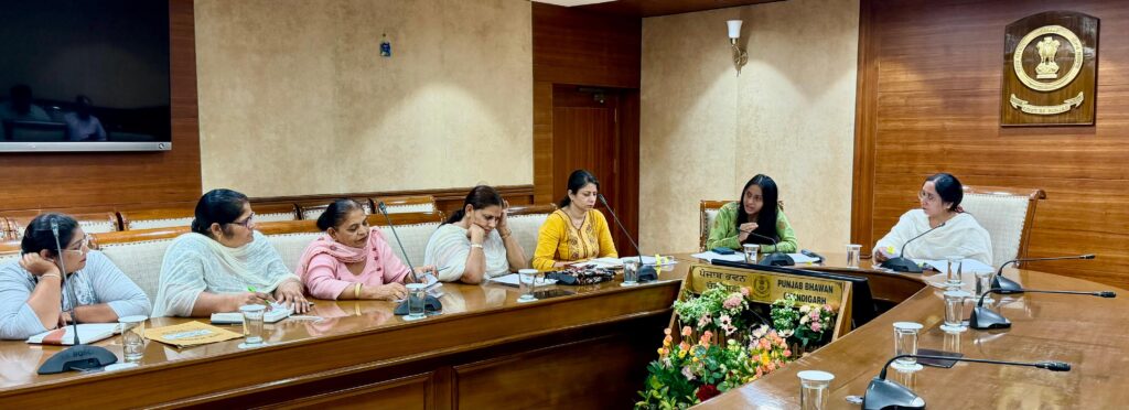 ਅੱਜ ਪੰਜਾਬ ਭਵਨ ਵਿਖੇ ਸਮਾਜਿਕ ਸੁਰੱਖਿਆ, ਇਸਤਰੀ ਅਤੇ ਬਾਲ ਵਿਕਾਸ ਮੰਤਰੀ ਡਾ. ਬਲਜੀਤ ਕੌਰ ਨੇ ਸਮਾਜਿਕ ਸੁਰੱਖਿਆ, ਇਸਤਰੀ ਅਤੇ ਬਾਲ ਵਿਕਾਸ ਵਿਭਾਗ ਦੀ ਡਾਇਰੈਕਟਰ ਸ੍ਰੀਮਤੀ ਸ਼ੇਨਾ ਅਗਰਵਾਲ ਅਤੇ ਡਿਪਟੀ ਡਾਇਰੈਕਟਰ ਸ੍ਰੀਮਤੀ ਸੁਮਨਦੀਪ ਕੌਰ ਦੀ ਹਾਜ਼ਰੀ ਵਿੱਚ ਆਂਗਣਵਾੜੀ ਵਰਕਰਾਂ ਅਤੇ ਹੈਲਪਰਾਂ ਨਾਲ ਮੀਟਿੰਗ ਕਰਦਿਆਂ ਕਿਹਾ ਕਿ ਆਂਗਣਵਾੜੀ ਵਰਕਰ ਅਤੇ ਹੈਲਪਰ ਵਿਭਾਗ ਦਾ ਅਹਿਮ ਹਿੱਸਾ ਹਨ ਅਤੇ ਜ਼ਮੀਨੀ ਪੱਧਰ ’ਤੇ ਬੱਚਿਆਂ, ਮਹਿਲਾਵਾਂ ਅਤੇ ਪਰਿਵਾਰਾਂ ਤੱਕ ਸਰਕਾਰੀ ਯੋਜਨਾਵਾਂ ਪਹੁੰਚਾਉਣ ਵਿੱਚ ਮਹੱਤਵਪੂਰਨ ਭੂਮਿਕਾ ਨਿਭਾ ਰਹੇ ਹਨ। ਉਨ੍ਹਾਂ ਭਰੋਸਾ ਦਿੱਤਾ ਕਿ ਆਂਗਣਵਾੜੀ ਵਰਕਰਾਂ ਅਤੇ ਹੈਲਪਰਾਂ ਦੀ ਹਰ ਜਾਇਜ਼ ਮੰਗ ਨੂੰ ਗੰਭੀਰਤਾ ਨਾਲ ਵਿਚਾਰ ਕਰਕੇ ਪੂਰਾ ਕੀਤਾ ਜਾਵੇਗਾ।