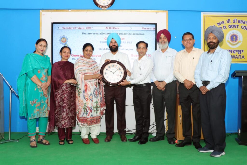 ਤਲਵਾੜਾ(ਸੋਨੂੰ ਥਾਪਰ) – ਕਾਲਜ ਵਿੱਚ ਇਨਾਮ ਵੰਡ ਸਮਾਰੋਹ ਐਮ.ਆਰ.ਪੀ.ਡੀ ਸਰਕਾਰੀ ਕਾਲਜ ਤਲਵਾੜਾ ਦੇ ਪ੍ਰਿੰਸੀਪਲ ਗੁਰਮੀਤ ਸਿੰਘ ਦੀ ਅਗਵਾਈ ਅਤੇ ਕਾਲਜ ਦੇ ਰਜਿਸਟਰਾਰ ਪ੍ਰੋ. ਅਜੇ ਕੁਮਾਰ ਅਰਸ਼ ਦੀ ਨਿਗਰਾਨੀ ਹੇਠ ਅਤੇ ਅਕਾਦਮਿਕ ਇੰਚਾਰਜ ਪ੍ਰੋ. ਸੀਮਾ ਜੱਸਲ ਦੇ ਸਹਿਯੋਗ ਨਾਲ ਆਯੋਜਿਤ ਕੀਤਾ ਗਿਆ। ਰਾਸ਼ਟਰੀ ਮਹਾਵਿਦਿਆਲਾ ਹੁਸ਼ਿਆਰਪੁਰ ਦੀ ਪ੍ਰਿੰਸੀਪਲ ਪ੍ਰੋ. ਅਨੀਤਾ ਸਾਗਰ ਨੇ ਇਸ ਇਨਾਮ ਵੰਡ ਸਮਾਰੋਹ ਵਿੱਚ ਮੁੱਖ ਮਹਿਮਾਨ ਵਜੋਂ ਸ਼ਿਰਕਤ ਕੀਤੀ। ਉਨ੍ਹਾਂ ਤੋਂ ਇਲਾਵਾ, ਡੀ.ਏ.ਵੀ. ਕਾਲਜ, ਹੁਸ਼ਿਆਰਪੁਰ ਦੇ ਪ੍ਰੋ. ਡਾ. ਕੁਲਵੰਤ ਸਿੰਘ ਅਤੇ ਉਨ੍ਹਾਂ ਦੀ ਪਤਨੀ ਲਤਾ ਕੁਮਾਰੀ ਇਸ ਮੌਕੇ ਵਿਸ਼ੇਸ਼ ਮਹਿਮਾਨ ਵਜੋਂ ਮੌਜੂਦ ਸਨ। ਇਸ ਇਨਾਮ ਵੰਡ ਸਮਾਰੋਹ ਵਿੱਚ, ਪੰਜਾਬ ਯੂਨੀਵਰਸਿਟੀ, ਚੰਡੀਗੜ੍ਹ ਵੱਲੋਂ ਲਈ ਗਈ ਪ੍ਰੀਖਿਆ ਵਿੱਚ ਵੱਖ-ਵੱਖ ਜਮਾਤਾਂ ਵਿੱਚ ਪਹਿਲਾ, ਦੂਜਾ ਅਤੇ ਤੀਜਾ ਸਥਾਨ ਪ੍ਰਾਪਤ ਕਰਨ ਵਾਲੇ ਵਿਦਿਆਰਥੀਆਂ ਤੋਂ ਇਲਾਵਾ, ਯੁਵਾ ਗਤੀਵਿਧੀਆਂ, ਖੇਡਾਂ, ਐਨਐਸਐਸ, ਐਨਸੀਸੀ ਅਤੇ ਹੋਰ ਵੱਖ-ਵੱਖ ਗਤੀਵਿਧੀਆਂ ਵਿੱਚ ਸਰਗਰਮ ਹਿੱਸਾ ਲੈਣ ਵਾਲੇ ਵਿਦਿਆਰਥੀਆਂ ਨੂੰ ਸਰਟੀਫਿਕੇਟ, ਮੈਡਲ ਅਤੇ ਕੰਧ ਘੜੀਆਂ ਨਾਲ ਸਨਮਾਨਿਤ ਕੀਤਾ ਗਿਆ। ਈ-ਸੰਸਦ ਹਾਲ ਵਿੱਚ ਆਯੋਜਿਤ ਇਨਾਮ ਵੰਡ ਸਮਾਰੋਹ ਗੁਰਬਾਣੀ ਦੇ ਸ਼ਬਦਾਂ ਨਾਲ ਸ਼ੁਰੂ ਹੋਇਆ। ਕਾਲਜ ਦੀਆਂ ਵਿਦਿਆਰਥਣਾਂ ਸਿਮਰਨ ਠਾਕੁਰ ਅਤੇ ਸਿਮਰਨ ਰਾਣੀ ਨੇ ਕਾਲਜ ਦੀ ਸਾਲਾਨਾ ਰਿਪੋਰਟ ਪੜ੍ਹੀ। ਪ੍ਰੋ. ਸੁਮਨ ਬਾਲਾ ਨੇ ਸਟੇਜ ਸਕੱਤਰ ਦੀ ਭੂਮਿਕਾ ਬਹੁਤ ਵਧੀਆ ਢੰਗ ਨਾਲ ਨਿਭਾਈ।
