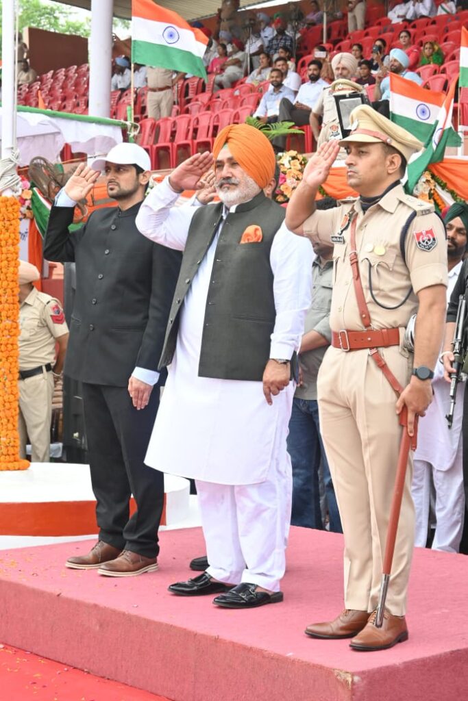 ਨਹਿਰੂ ਮੈਮੋਰੀਅਲ ਸਰਕਾਰੀ ਕਾਲਜ, ਮਾਨਸਾ ਦੇ ਬਹੁਮੰਤਵੀ ਖੇਡ ਸਟੇਡੀਅਮ ਵਿਖੇ ਜ਼ਿਲ੍ਹਾ ਪੱਧਰੀ ਸੁਤੰਤਰਤਾ ਦਿਵਸ ਸਮਾਰੋਹ ਦੌਰਾਨ ਕੈਬਨਿਟ ਮੰਤਰੀ ਨੇ ਕਿਹਾ ਕਿ ਪੰਜਾਬੀਆਂ ਵੱਲੋਂ ਦੇਸ਼ ਦੇ ਆਜ਼ਾਦੀ ਸੰਗਰਾਮ ਦੌਰਾਨ ਦਿੱਤੀਆਂ ਗਈਆਂ ਅਥਾਹ ਕੁਰਬਾਨੀਆਂ ਸਾਡੇ ਸਾਰਿਆਂ ਲਈ ਹਮੇਸ਼ਾ ਮਾਣ ਅਤੇ ਪ੍ਰੇਰਣਾਸਰੋਤ ਬਣੀਆਂ ਰਹਿਣਗੀਆਂ। ਇਸ ਮੌਕੇ ਉਨ੍ਹਾਂ ਪਰੇਡ ਦਾ ਨਿਰੀਖਣ ਕੀਤਾ ਅਤੇ ਮਾਰਚ ਪਾਸਟ ਵਿੱਚ ਸ਼ਾਮਲ ਟੁਕੜੀਆਂ ਤੋਂ ਸਲਾਮੀ ਲਈ।
