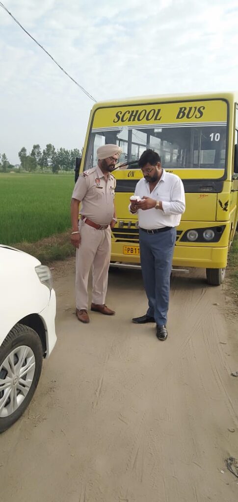 ਭੋਗਪੁਰ (ਜਲੰਧਰ), 8 ਅਗਸਤ:- ਖੇਤਰੀ ਟਰਾਂਸਪੋਰਟ ਅਫ਼ਸਰ (ਆਰ.ਟੀ.ਓ.) ਜਲੰਧਰ ਅਮਨਪ੍ਰੀਤ ਸਿੰਘ ਦੀਆਂ ਹਦਾਇਤਾਂ ’ਤੇ ਅੱਜ ਇਥੇ ਸੇਫ ਸਕੂਲ ਵਾਹਨ ਪਾਲਿਸੀ ਤਹਿਤ ਸਕੂਲੀ ਵਾਹਨਾਂ ਦੀ ਚੈਕਿੰਗ ਕੀਤੀ ਗਈ, ਜਿਸ ਦੌਰਾਨ ਇਥੋਂ ਦੇ ਇਕ ਪ੍ਰਾਈਵੇਟ ਸਕੂਲ ਦੇ ਇਕ ਦਰਜਨ ਸਕੂਲੀ ਵਾਹਨਾਂ ਦੇ ਚਲਾਨ ਕੀਤੇ ਗਏ।