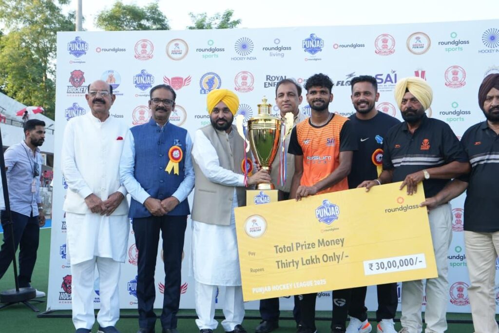 ਅੱਜ ਇੱਥੇ ਪੰਜਾਬ ਹਾਕੀ ਲੀਗ 2025 ਦੇ ਫਾਈਨਲ ਮੈਚ ਦੌਰਾਨ ਇਕੱਠ ਨੂੰ ਸੰਬੋਧਨ ਕਰਦਿਆਂ ਮੁੱਖ ਮੰਤਰੀ ਨੇ ਕਿਹਾ ਕਿ ਇਹ ਬਹੁਤ ਮਾਣ ਅਤੇ ਸੰਤੁਸ਼ਟੀ ਦੀ ਗੱਲ ਹੈ ਕਿ ਪਹਿਲੀ ਜੂਨੀਅਰ ਹਾਕੀ ਲੀਗ ਪੰਜਾਬ ਹਾਕੀ ਅਤੇ ਰਾਊਂਡ ਗਲਾਸ ਅਕਾਦਮੀ ਦੁਆਰਾ ਸ਼ੁਰੂ ਕੀਤੀ ਜਾ ਰਹੀ ਹੈ। ਉਨ੍ਹਾਂ ਕਿਹਾ ਕਿ ਇਹ ਹਾਕੀ ਦੇ ਖੇਤਰ ਵਿੱਚ ਹੁਣ ਤੱਕ ਦੀ ਸਭ ਤੋਂ ਵੱਧ ਇਨਾਮੀ ਰਾਸ਼ੀ ਵਾਲੀ ਲੀਗ ਹੈ। ਭਗਵੰਤ ਸਿੰਘ ਮਾਨ ਨੇ ਕਿਹਾ ਕਿ ਇਹ ਲੀਗ ਮੋਹਾਲੀ ਤੋਂ ਸ਼ੁਰੂ ਕੀਤੀ ਗਈ ਸੀ, ਜਿਸਦੇ ਫਾਈਨਲ ਜਲੰਧਰ ਵਿੱਚ ਖੇਡੇ ਜਾ ਰਹੇ ਹਨ।