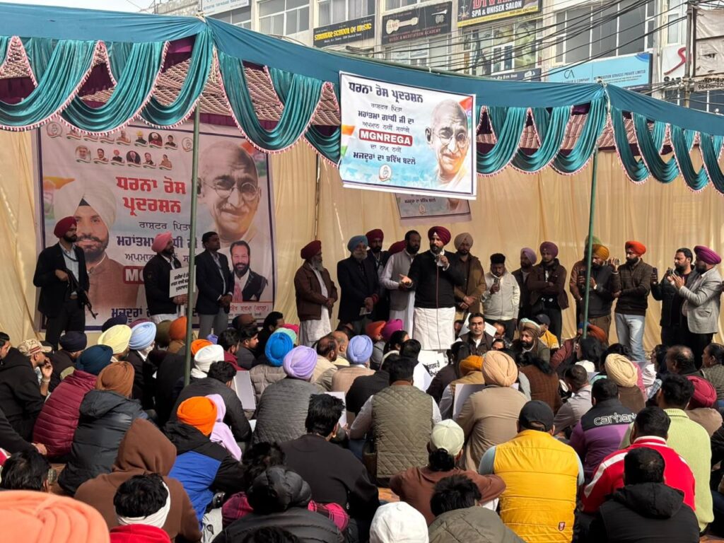 ਚੰਡੀਗੜ੍ਹ, 21 ਦਸੰਬਰ: ਪੰਜਾਬ ਕਾਂਗਰਸ ਪ੍ਰਧਾਨ ਅਮਰਿੰਦਰ ਸਿੰਘ ਰਾਜਾ ਵੜਿੰਗ ਦੀ ਅਗਵਾਈ ਹੇਠ ਸੈਂਕੜੇ ਕਾਂਗਰਸੀ ਵਰਕਰਾਂ ਨੇ ਅੱਜ ਖਰੜ ਵਿੱਚ ਕੇਂਦਰ ਦੀ ਭਾਜਪਾ ਸਰਕਾਰ ਖ਼ਿਲਾਫ਼ ਮਹਾਤਮਾ ਗਾਂਧੀ ਰਾਸ਼ਟਰੀ ਪੇਂਡੂ ਰੁਜ਼ਗਾਰ ਗਰੰਟੀ ਐਕਟ (ਮਨਰੇਗਾ) ਨੂੰ ਖਤਮ ਕਰਨ ਨੂੰ ਲੈ ਕੇ ਇੱਕ ਵਿਸ਼ਾਲ ਵਿਰੋਧ ਪ੍ਰਦਰਸ਼ਨ ਕੀਤਾ ਗਿਆ।