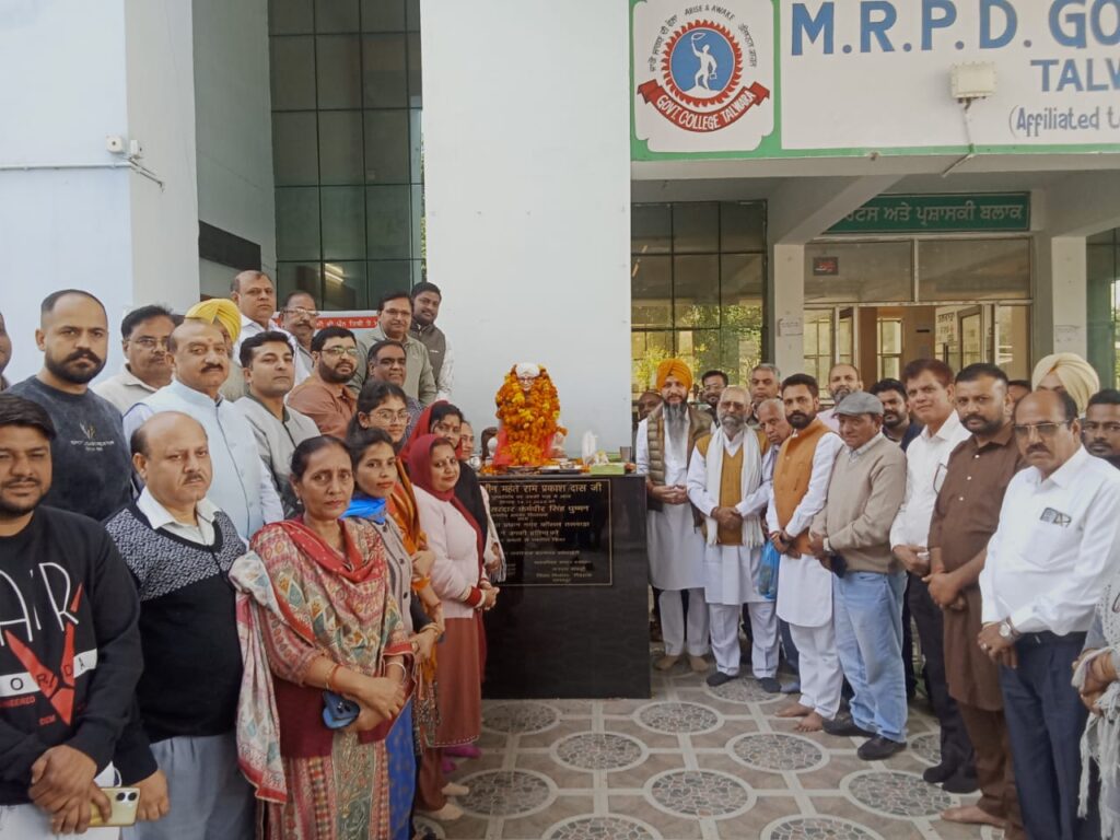 ਤਲਵਾਰਾ, 14 ਨਵੰਬਰ (ਸੋਨੂੰ ਥਾਪਰ) – ਮਹੰਤ ਰਾਮ ਪ੍ਰਕਾਸ਼ ਦਾਸ ਸਰਕਾਰੀ ਮਹਾਵਿਦਿਆਲਯ ਤਲਵਾਰਾ ਵਿੱਚ, ਨਗਰ ਕੌਂਸਲ ਤਲਵਾਰਾ ਦੇ ਅਧਿਆਕਸ਼ ਹਰਸ਼ ਕੁਮਾਰ ਅਰੋੜਾ ਦੀ ਅਗਵਾਈ ਵਿੱਚ, ਮਹੰਤ ਰਾਮ ਪ੍ਰਕਾਸ਼ ਦਾਸ ਮੈਮੋਰਿਅਲ ਵੈਲਫੇਅਰ ਸੋਸਾਇਟੀ ਦੇ ਤਹਿਤ ਬ੍ਰਹਮਲੀਨ 1008 ਮਹੰਤ ਸ਼੍ਰੀ ਰਾਮ ਪ੍ਰਕਾਸ਼ ਦਾਸ ਜੀ ਦੀ ਮੂਰਤੀ ਸਥਾਪਨਾ ਸਮਾਰੋਹ ਸਫਲਤਾਪੂਰਵਕ ਆਯੋਜਿਤ ਕੀਤਾ ਗਿਆ।