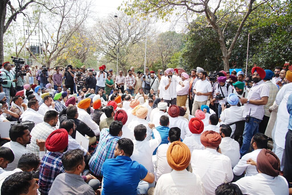 ਪ੍ਰਦੇਸ਼ ਕਾਂਗਰਸ ਪ੍ਰਧਾਨ ਅਮਰਿੰਦਰ ਸਿੰਘ ਰਾਜਾ ਵੜਿੰਗ ਦੀ ਅਗਵਾਈ ‘ਚ ਸੈਂਕੜੇ ਕਾਂਗਰਸੀ ਕਾਰਕੁਨ ਪੰਜਾਬ ਕਾਂਗਰਸ ਭਵਨ ਵਿਖੇ ਇਕੱਠੇ ਹੋਏ ਅਤੇ ਬਾਅਦ ‘ਚ ਸੈਕਟਰ 9 ਸਥਿਤ ਈ.ਡੀ ਦਫਤਰ ਵੱਲ ਮਾਰਚ ਕੀਤਾ।