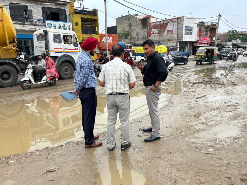 ਜਲੰਧਰ, 15 ਜੁਲਾਈ : ਡਿਪਟੀ ਕਮਿਸ਼ਨਰ ਡਾ. ਹਿਮਾਂਸ਼ੂ ਅਗਰਵਾਲ ਨੇ ਅੱਜ ਹੁਸ਼ਿਆਰਪੁਰ ਰੋਡ ਦਾ ਦੌਰਾ ਕਰਕੇ ਇਸ ਹਾਈਵੇ ਨੂੰ ਚੌੜਾ ਅਤੇ ਚਹੁੰ-ਮਾਰਗੀ ਕਰਨ ਦੇ ਚੱਲ ਰਹੇ ਪ੍ਰਾਜੈਕਟ ਦਾ ਜਾਇਜ਼ਾ ਲਿਆ। ਉਨ੍ਹਾਂ ਜਲੰਧਰ ਨਗਰ ਨਿਗਮ ਨੂੰ ਇਸ ਸੜਕ ‘ਤੇ ਸੀਵਰੇਜ ਬਲਾਕੇਜ ਨੂੰ ਪਹਿਲ ਦੇ ਆਧਾਰ ‘ਤੇ ਦੂਰ ਕਰਨ ਦੀ ਹਦਾਇਤ ਕੀਤੀ, ਤਾਂ ਜੋ ਮੀਂਹ ਦੇ ਪਾਣੀ ਦੀ ਢੁੱਕਵੀਂ ਨਿਕਾਸੀ ਯਕੀਨੀ ਬਣਾਈ ਜਾ ਸਕੇ। ਇਸੇ ਤਰ੍ਹਾਂ ਉਨ੍ਹਾਂ ਲੋਕ ਨਿਰਮਾਣ ਵਿਭਾਗ (ਪੀ.ਡਬਲਯੂ.ਡੀ.) ਨੂੰ ਵੀ ਨਹਿਰੀ ਪਾਣੀ ਪ੍ਰਾਜੈਕਟ ਤਹਿਤ ਪਾਈਪ ਲਾਈਨ ਵਿਛਾਉਣ ਤੋਂ ਬਾਅਦ ਸੜਕ ਨੂੰ ਪੱਧਰਾ ਕਰਨ ਦਾ ਕੰਮ ਪੂਰਾ ਕਰਨ ਦੇ ਨਿਰਦੇਸ਼ ਦਿੱਤੇ, ਤਾਂ ਜੋ ਰਾਹਗੀਰਾਂ ਨੂੰ ਇੱਥੋਂ ਲੰਘਣ ਵਿੱਚ ਕੋਈ ਮੁਸ਼ਕਲ ਪੇਸ਼ ਨਾ ਆਵੇ।
