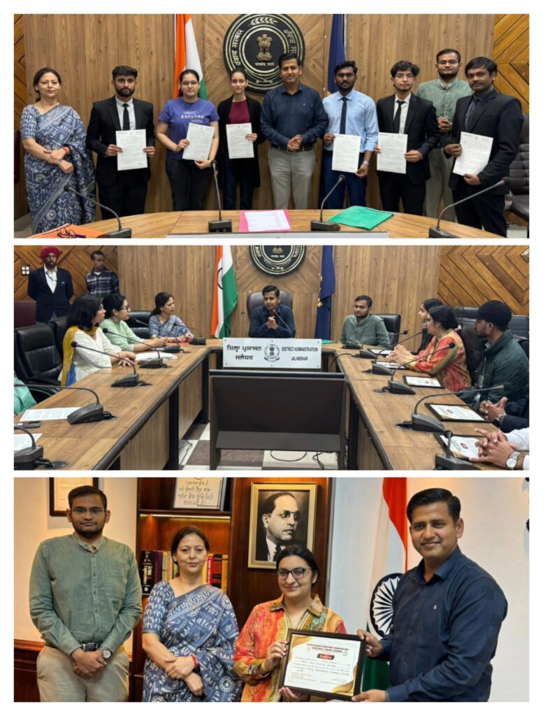 ਜਲੰਧਰ, 16 ਮਾਰਚ : ਡਿਪਟੀ ਕਮਿਸ਼ਨਰ ਡਾ. ਹਿਮਾਂਸ਼ੂ ਅਗਰਵਾਲ ਵੱਲੋਂ ਜ਼ਿਲ੍ਹੇ ਵਿੱਚ ਪਬਲਿਕ-ਪਾਲਿਸੀ ਇੰਟਰਨਸ਼ਿਪ ਪ੍ਰੋਗਰਾਮ ਤਹਿਤ ਚੱਲ ਰਹੇ 5ਵੇਂ ਬੈਚ ਦੀ ਸਮਾਪਤੀ ’ਤੇ 65 ਇੰਟਰਨਜ਼ ਨੂੰ ਸਰਟੀਫਿਕੇਟ ਪ੍ਰਦਾਨ ਕੀਤੇ ਗਏ।