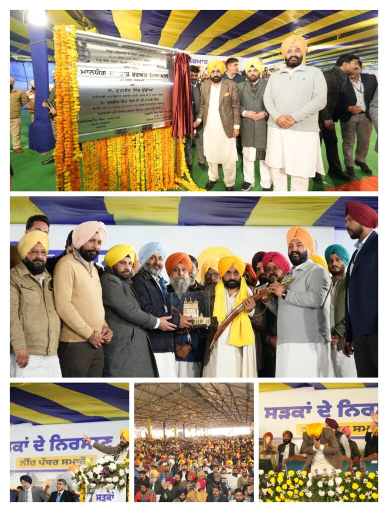ਮਜੀਠਾ (ਅੰਮ੍ਰਿਤਸਰ), 18 ਜਨਵਰੀ:-;ਪੰਜਾਬ ਦੇ ਮੁੱਖ ਮੰਤਰੀ ਭਗਵੰਤ ਸਿੰਘ ਮਾਨ ਨੇ ਅੱਜ ਇੱਥੇ ਮਜੀਠਾ ਵਿਖੇ ਸੂਬਾ ਪੱਧਰੀ ਸਮਾਗਮ ਦੌਰਾਨ 23 ਪੇਂਡੂ ਲਿੰਕ ਸੜਕਾਂ ਦਾ ਨੀਂਹ ਪੱਥਰ ਰੱਖਦਿਆਂ ਐਲਾਨ ਕੀਤਾ ਕਿ ਪੰਜਾਬ ਵਿੱਚ ਖੌਫ਼ ਦਾ ਦੌਰ, “ਪਰਚੀ ਦਾ ਦੌਰ” (ਜਬਰੀ ਵਸੂਲੀ) ਅਤੇ ਅਕਾਲੀਆਂ ਦੀ ਧੱਕੇਸ਼ਾਹੀ ਦਾ ਦੌਰ ਖਤਮ ਹੋ ਗਿਆ ਹੈ। ਮੁੱਖ ਮੰਤਰੀ ਨੇ ਕਿਹਾ ਕਿ ਸੂਬੇ ਦੇ ਲੋਕਾਂ ਨੇ ਡਰਾਉਣ-ਧਮਕਾਉਣ ਵਾਲੀ ਸਿਆਸਤ ਨੂੰ ਪੂਰੀ ਤਰ੍ਹਾਂ ਨਾਕਾਰ ਦਿੱਤਾ ਹੈ ਅਤੇ ਵਿਕਾਸ, ਜਵਾਬਦੇਹੀ ਤੇ ਲੋਕ ਭਲਾਈ ‘ਤੇ ਕੇਂਦਰਿਤ ਮਾਡਲ ਨੂੰ ਅਪਣਾਇਆ ਹੈ।