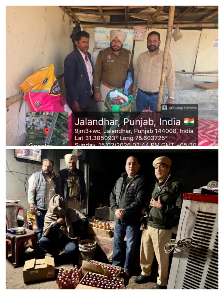 ਜਲੰਧਰ, 15 ਫਰਵਰੀ : ਡਿਪਟੀ ਕਮਿਸ਼ਨਰ (ਆਬਕਾਰੀ) ਐਸ.ਕੇ. ਗਰਗ ਦੇ ਨਿਰਦੇਸ਼ਾਂ ’ਤੇ ਕਾਰਵਾਈ ਕਰਦਿਆਂ ਆਬਕਾਰੀ ਵਿਭਾਗ ਵੱਲੋਂ ਜਲੰਧਰ ਵਿੱਚ ਦੋ ਛਾਪੇਮਾਰੀਆਂ ਦੌਰਾਨ ਵੱਡੀ ਮਾਤਰਾ ਵਿੱਚ ਨਾਜਾਇਜ਼ ਸ਼ਰਾਬ ਬਰਾਮਦ ਕੀਤੀ ਗਈ ਅਤੇ ਦੋ ਵਿਅਕਤੀਆਂ ਨੂੰ ਗ੍ਰਿਫ਼ਤਾਰ ਕੀਤਾ ਗਿਆ ਹੈ। ਇਹ ਕਾਰਵਾਈ ਸਹਾਇਕ ਕਮਿਸ਼ਨਰ (ਆਬਕਾਰੀ), ਜਲੰਧਰ ਰੇਂਜ-2, ਨਵਜੀਤ ਸਿੰਘ ਦੀ ਨਿਗਰਾਨੀ ਹੇਠ ਕੀਤੀ ਗਈ।