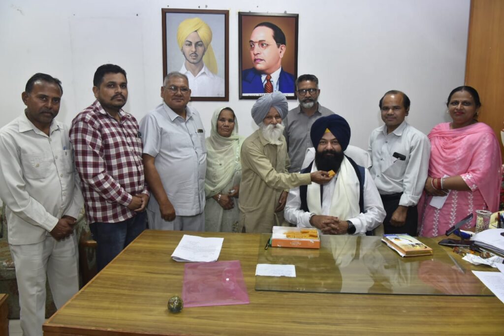 ਚੰਡੀਗੜ੍ਹ, 17 ਅਪ੍ਰੈਲ: ਬਹੁਜਨ ਅੰਦੋਲਨ ਦੇ ਨਾਇਕ ਮਰਹੂਮ ਸਾਹਿਬ ਸ੍ਰੀ ਕਾਸ਼ੀ ਰਾਮ ਦੇ ਪਰਿਵਾਰਕ ਮੈਂਬਰਾਂ ਵੱਲੋਂ ਅੱਜ ਇੱਥੇ ਪੰਜਾਬ ਸਿਵਲ ਸਕੱਤਰੇਤ ਵਿਖੇ ਪੰਜਾਬ ਰਾਜ ਅਨੁਸੂਚਿਤ ਜਾਤੀਆਂ ਕਮਿਸ਼ਨ ਦੇ ਚੇਅਰਮੈਨ ਜਸਵੀਰ ਸਿੰਘ ਗੜ੍ਹੀ ਦਾ ਸਨਮਾਨ ਕੀਤਾ ਗਿਆ।