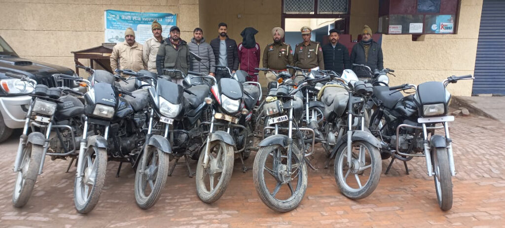 ਜਦੋ ਸਬ ਇੰਨਸਪੈਕਟਰ ਰਾਕੇਸ਼ ਕੁਮਾਰ ਥਾਣਾ ਗੜ੍ਹਸ਼ੰਕਰ ਵੱਲੋ ਸਮੇਤ ਪੁਲਿਸ ਪਾਰਟੀ ਦੌਰਾਨੇ ਗਸ਼ਤ ਵਾ ਚੈਕਿੰਗ ਸੱਕੀ ਪੁਰਸ਼ਾ ਅਤੇ ਵਹੀਕਲ ਚੈਕਿੰਗ ਦੇ ਸਬੰਧ ਵਿਚ ਪੁਲ ਨਹਿਰ ਇਬਰਾਹੀਮਪੁਰ ਮੌਜੂਦ ਸੀ ਤਾ ਦੇਨੋਵਾਲ ਸਾਇਡ ਵੱਲੋ ਇਕ ਮੋਟਰਸਾਇਕਲ ਨੰਬਰੀ PB-25-9055 ਮਾਰਕਾ ਯਾਮਾਹਾ ਰੰਗ ਕਾਲਾ ਆਉਦਾ ਦਿਖਾਈ ਦੇਣ ਤੇ ਜਿਸ ਨੂੰ ਸ਼ੱਕ ਦੀ ਬਿਨਾ ਤੇ ਕਾਬੂ ਕੇ ਨਾਮ ਪਤਾ ਪੁਛਿਆ ਜਿਸ ਨੇ ਆਪਣਾ ਨਾਮ ਬਿਕਰਮ ਉਰਫ ਵਿੱਕੀ ਪੁੱਤਰ ਰਤਨ ਲਾਲ ਵਾਸੀ ਸੈਦਪੁਰ ਥਾਣਾ ਚੱਬੇਵਾਲ ਜਿਲਾ ਹੁਸ਼ਿਆਰਪੁਰ ਦੱਸਿਆਂ ਜਿਸ ਦੀ ਤਲਾਸ਼ੀ ਕਰਨ ਤੇ ਪਹਿਨੇ ਹੋਏ ਟਰੈਕਸੂਟ ਦੀ ਸੱਜੀ ਜੇਬ ਵਿਚੋ ਖੁੱਲੇ 14 ਨਸ਼ੀਲੇ ਟੀਕੇ ਮਾਰਕਾ Buprenorphine Injection IP 0.3 mg/2ml घरभर रेट के मुँवरभा घर 10 भिडी 18-01-2024 ਅ/ਧ 22-61-85 NDPS ACT ਥਾਣਾ ਗੜਸ਼ੰਕਰ ਦਰਜ ਰਜਿਸਟਰ ਕਰਵਾ ਕੇ ਗ੍ਰਿਫਤਾਰ ਕੀਤਾ ਗਿਆ। ਦੋਸ਼ੀ ਵੱਲੋ ਕੀਤੇ ਫਰਦ ਇੰਕਸਾਫ ਮੁਤਾਬਿਕ ਦੋਸ਼ੀ ਪਾਸੋ ਕੁੱਲ ਵੱਖ-ਵੱਖ ਤਰਾ ਦੇ ਵੱਖ-ਵੱਖ ਥਾਂਵਾ ਤੋਂ ਚੋਰੀ ਕੀਤੇ ਕੁੱਲ 14 ਮੋਟਰਸਾਇਕਲ ਬ੍ਰਾਮਦ ਕੀਤੇ ਗਏ ਅਤੇ ਮੋਟਰਸਾਇਕਲ ਨੰਬਰੀ PB-25-9055 ਮਾਰਕਾ ਯਾਮਾਹਾ ਰੰਗ ਕਾਲਾ ਵੀ ਚੋਰੀ ਕੀਤਾ ਪਾਇਆ ਗਿਆ। ਦੋਸ਼ੀ ਪਾਸੋ ਡੂੰਘਾਈ ਨਾਲ ਪੁੱਛਗਿਛ ਕੀਤੀ ਜਾ ਰਹੀ ਹੈ,ਕਿ ਉਕਤ ਦੋਸ਼ੀ ਇਹ ਟੀਕੇ ਕਿਸ ਪਾਸੋ ਖਰੀਦ ਕਰਦਾ ਹੈ ਅਤੇ ਅੱਗੇ ਕਿਹੜੇ ਕਿਹੜੇ ਵਿਅਕਤੀਆ ਨੂੰ ਵੇਚਦਾ ਹੈ ।