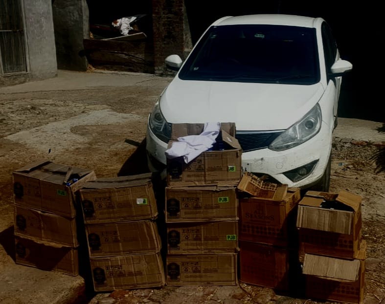 ਗੱਡੀ ਦੀ ਤਲਾਸ਼ੀ ਲੈਣ ‘ਤੇ ਪੁਲਿਸ ਨੇ ਇੰਪੀਰੀਅਲ ਬਲੂ ਵਿਸਕੀ ਦੇ 10 ਡੱਬੇ (240 ਬੋਤਲਾਂ, 90,000 ਮਿਲੀਲੀਟਰ) ਅਤੇ ਆਲ ਸੀਜ਼ਨ ਵਿਸਕੀ ਦੇ 4 ਡੱਬੇ (48 ਬੋਤਲਾਂ, 36,000 ਮਿ.ਲੀ.) ਬਰਾਮਦ ਕੀਤੇ।