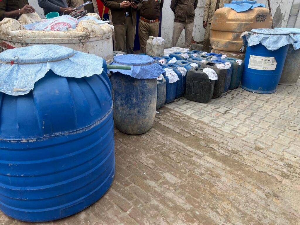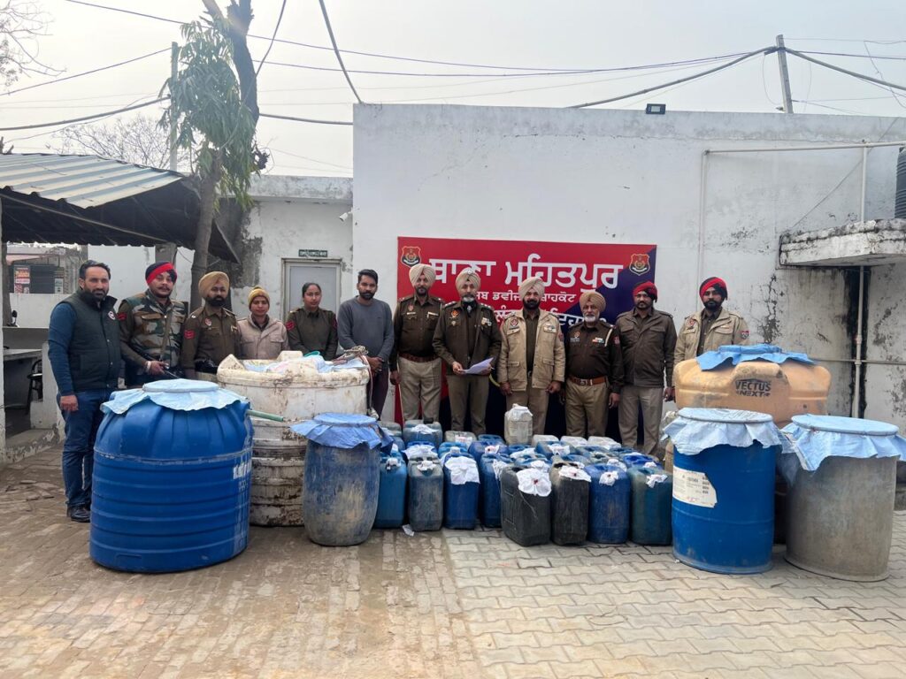 ਜਲੰਧਰ/ਮਹਿਤਪੁਰ, 19 ਜਨਵਰੀ :  ਇੱਕ ਮਹੱਤਵਪੂਰਨ ਸਫਲਤਾ ਹਾਸਲ ਕਰਦਿਆਂ ਜਲੰਧਰ ਦਿਹਾਤੀ ਪੁਲਿਸ ਨੇ 18 ਜਨਵਰੀ ਦੀ ਰਾਤ ਨੂੰ ਮਹਿਤਪੁਰ ਦੀ ਹਵੇਲੀ ਟਾਵਰ ਕਲੋਨੀ ਵਿੱਚ ਇੱਕ ਅਸਥਾਈ ਗੈਰ-ਕਾਨੂੰਨੀ ਉਤਪਾਦਨ ਯੂਨਿਟ ਤੋਂ 4030 ਲੀਟਰ ਜ਼ਹਿਰੀਲੀ ਰਸਾਇਣਕ-ਅਧਾਰਤ ਸ਼ਰਾਬ ਬਰਾਮਦ ਕੀਤੀ ਹੈ। ਇਹ ਕਾਰਵਾਈ ਐਸਪੀ ਇਨਵੈਸਟੀਗੇਸ਼ਨ ਜਸਰੂਪ ਕੌਰ ਬਾਠ ਦੇ ਨਿਰਦੇਸ਼ਾਂ ‘ਤੇ ਸ਼ੁਰੂ ਕੀਤੀ ਗਈ ਸਮਾਜ ਵਿਰੋਧੀ ਅਨਸਰਾਂ ਅਤੇ ਨਸ਼ੀਲੇ ਪਦਾਰਥਾਂ ਦੀ ਤਸਕਰੀ ਵਿਰੁੱਧ ਚੱਲ ਰਹੀ ਮੁਹਿੰਮ ਦੇ ਤਹਿਤ ਕੀਤੀ ਗਈ ਸੀ।