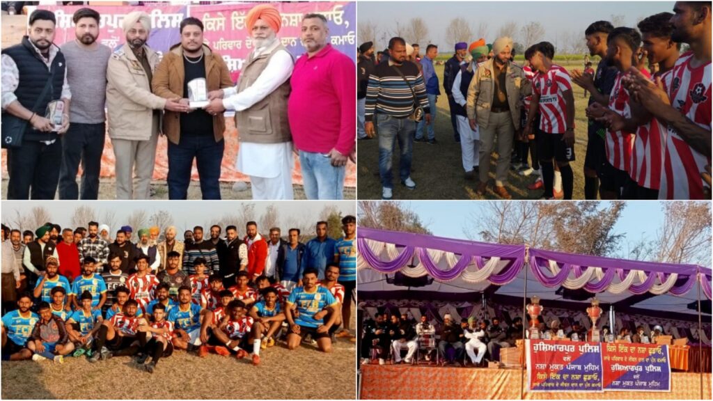 ਇਸੇ ਮੁਹਿੰਮ ਤਹਿਤ ਸ਼੍ਰੀ ਪਰਮਿੰਦਰ ਸਿੰਘ ਉਪ ਪੁਲਿਸ ਕਪਤਾਨ ਤਫਤੀਸ਼ ਹੁਸ਼ਿਆਰਪੁਰ ਜੀ ਦੇ ਦਿਸ਼ਾ ਨਿਰਦੇਸ਼ਾ ਤੇ 51 ਜਗਜੀਤ ਸਿੰਘ ਮੁੱਖ ਅਫਸਰ ਥਾਣਾ ਮੇਹਟੀਆਣਾ ਅਤੇ ਉੱਚ ਅਫਸਰਾਂ ਦੀਆਂ ਹਦਾਇਤਾਂ ਦੀ ਇੰਨ- ਬਿੰਨ ਪਾਲਣਾ ਕਰਦੇ ਹੋਏ ਅੱਜ ਮਿਤੀ 09-02-2024 ਨੂੰ ਪਿੰਡ ਫਦਮਾ ਦੀ ਗਰਾਉਡ ਵਿਖੇ ਫੁੱਟਵਾਲ ਦੇ ਮੈਚ ਕਰਵਾਏ ਗਏ। ਇਸ ਮੌਕੇ ਉੱਕਤ ਫੁੱਟਵਾਲ ਮੈਚ ਵਿੱਚ ਵੱਖ-ਵੱਖ ਪਿੰਡਾਂ ਦੇ ਨੌਜਵਾਨਾਂ ਤੇ ਪ੍ਰਮੁੱਖ ਸਖਸ਼ੀਅਤਾਂ ਨੇ ਭਾਗ ਲਿਆ।ਇਸ ਟੂਰਨਾਮੈਂਟ ਵਿੱਚ ਪਿੰਡ ਅਹਿਰਾਣਾ ਕਲਾ ਅਤੇ ਪਿੰਡ ਫੁਗਲਾਣਾ ਦੀਆਂ ਟੀਮਾਂ ਵਿੱਚਕਾਰ ਫੁੱਟਵਾਲ ਦਾ ਮੈਚ ਕਰਵਾਇਆ ਗਿਆ,ਜੋ $I ਜਗਜੀਤ ਸਿੰਘ ਮੁੱਖ ਅਫਸਰ ਥਾਣਾ ਵੱਲੋ ਪੰਜਾਬ ਪੁਲਿਸ ਵਲੋਂ ਸ਼ੁਰੂ ਕੀਤੇ ਉਪਰਾਲੇ ਦੀ ਸਲਾਘਾ ਕਰਦਿਆਂ ਕਿਹਾ ਕਿ ਇਹੋ ਜਿਹੇ ਨਿਵੇਕਲੀ ਮੁਹਿੰਮ ਨੌਜਵਾਨ ਪੀੜ੍ਹੀ ਨੂੰ ਨਸਿਆ ਵਰਗੀਆਂ ਮਾੜੀਆਂ ਅਲਾਮਤਾਂ ਤੋਂ ਦੂਰ ਰੱਖਣ ਵਿੱਚ ਅਹਿਮ ਰੋਲ ਅਦਾ ਕਰੇਗੀ ਅਤੇ ਥਾਣਾ ਇਲਾਕਾ ਦੇ ਨੌਜਵਾਨਾਂ ਨੂੰ ਨਸ਼ੇ ਦੇ ਬੁਰੇ ਪ੍ਰਭਾਵਾਂ ਪ੍ਰਤੀ ਜਾਗਰੂਕ ਕੀਤਾ ਗਿਆ ਅਤੇ ਵੱਧ ਤੋਂ ਵੱਧ ਖੇਡਾਂ ਵਿਚ ਹਿਸਾ ਲੈਣ ਲਈ ਉਤਸਾਹਿਤ ਕੀਤਾ ।