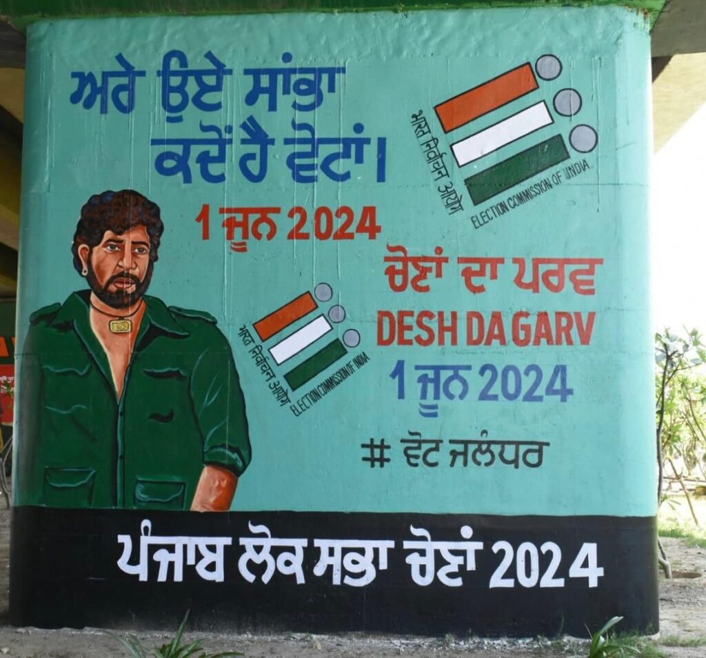 ਜਲੰਧਰ, – ਜ਼ਿਲ੍ਹਾ ਪ੍ਰਸ਼ਾਸਨ ਦੀ ਤਰਫੋਂ ਲੋਕ ਸਭਾ ਚੋਣਾਂ-2024 ਦੌਰਾਨ ਵੱਧ ਤੋਂ ਵੱਧ ਲੋਕਾਂ ਨੂੰ ਬਿਨ੍ਹਾਂ ਕਿਸੇ ਡਰ ਤੇ ਭੈਅ ਅਤੇ ਨਿਰਪੱਖ ਹੋ ਕੇ ਆਪਣੇ ਵੋਟ ਦੇ ਅਧਿਕਾਰ ਦਾ ਇਸਤੇਮਾਲ ਕਰਨ ਲਈ ਮੋਗੈਂਬੋ , ਗੱਬਰ ਤੇ ਗਜਨੀ ਸੁਨੇਹਾ ਦੇ ਰਹੇ ਹਨ ।
