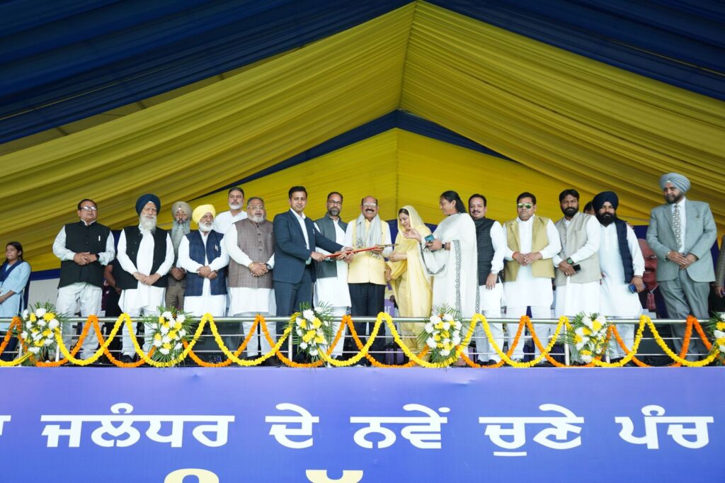 ਜਲੰਧਰ/ਚੰਡੀਗੜ੍ਹ, 19 ਨਵੰਬਰ : ਪੰਜਾਬ ਦੇ ਬਾਗਬਾਨੀ, ਸੁਤੰਤਰਤਾ ਸੈਨਾਨੀ ਅਤੇ ਰੱਖਿਆ ਸੇਵਾਵਾਂ ਭਲਾਈ ਮੰਤਰੀ ਮਹਿੰਦਰ ਭਗਤ ਨੇ ਅੱਜ ਪਿੰਡ ਜੰਡਿਆਲਾ ਦੇ ਖੇਡ ਸਟੇਡੀਅਮ ਵਿਖੇ ਜ਼ਿਲ੍ਹਾ ਪੱਧਰੀ ਸਮਾਗਮ ਦੌਰਾਨ ਨਵੇਂ ਚੁਣੇ ਗਏ ਪੰਚਾਂ ਨੂੰ ਅਹੁਦੇ ਦੀ ਸਹੁੰ ਚੁਕਾਈ। ਸਮਾਗਮ ਦੌਰਾਨ ਜ਼ਿਲ੍ਹੇ ਦੀਆਂ ਨਵੀਆਂ ਚੁਣੀਆਂ ਗਈਆਂ 890 ਗ੍ਰਾਮ ਪੰਚਾਇਤਾਂ ਵਿੱਚੋਂ 5443 ਪੰਚਾਂ ਨੂੰ ਕੈਬਨਿਟ ਮੰਤਰੀ ਵੱਲੋਂ ਅਹੁਦੇ ਦੀ ਸਹੁੰ ਚੁਕਾਈ ਗਈ।