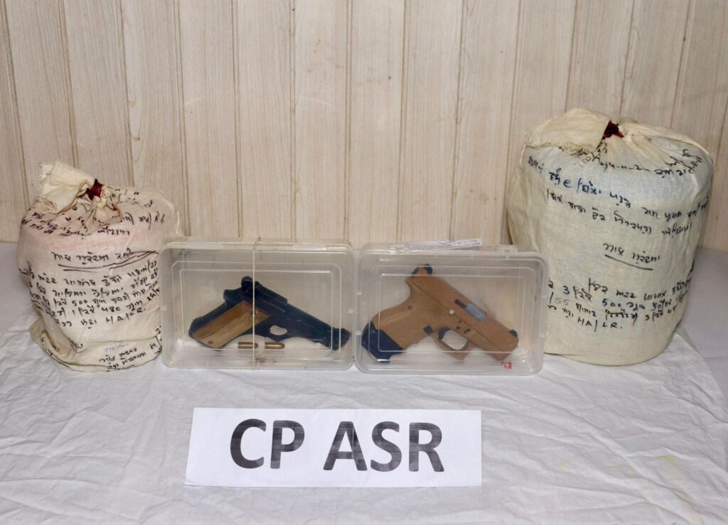 ਚੰਡੀਗੜ੍ਹ/ਅੰਮ੍ਰਿਤਸਰ, 17 ਨਵੰਬਰ: ਅੰਮ੍ਰਿਤਸਰ ਕਮਿਸ਼ਨਰੇਟ ਪੁਲਿਸ ਨੇ ਸਰਹੱਦ ਪਾਰੋਂ ਨਸ਼ੀਲੇ ਪਦਾਰਥਾਂ ਦੀ ਤਸਕਰੀ ਅਤੇ ਹਥਿਆਰਾਂ ਦੇ ਕਾਰਟੇਲ ਦਾ ਪਰਦਾਫਾਸ਼ ਕਰਦਿਆਂ ਇੱਕ ਵੱਡੀ ਸਫਲਤਾ ਪ੍ਰਾਪਤ ਕੀਤੀ ਹੈ, ਜਿਸ ਤਹਿਤ ਦੋ ਵਿਅਕਤੀਆਂ ਨੂੰ ਗ੍ਰਿਫ਼ਤਾਰ ਕਰਕੇ ਉਹਨਾਂ ਦੇ ਕਬਜ਼ੇ ਵਿੱਚੋਂ 3.5 ਕਿਲੋਗ੍ਰਾਮ ਹੈਰੋਇਨ, 1.5 ਕਿਲੋਗ੍ਰਾਮ ਮੈਥਾਕਲੋਨ ਅਤੇ ਦੋ ਪਿਸਤੌਲਾਂ ਸਮੇਤ ਇੱਕ ਆਧੁਨਿਕ 9 ਐਮਐਮ ਗਲਾਕ ਬਰਾਮਦ ਕੀਤਾ ਹੈ।