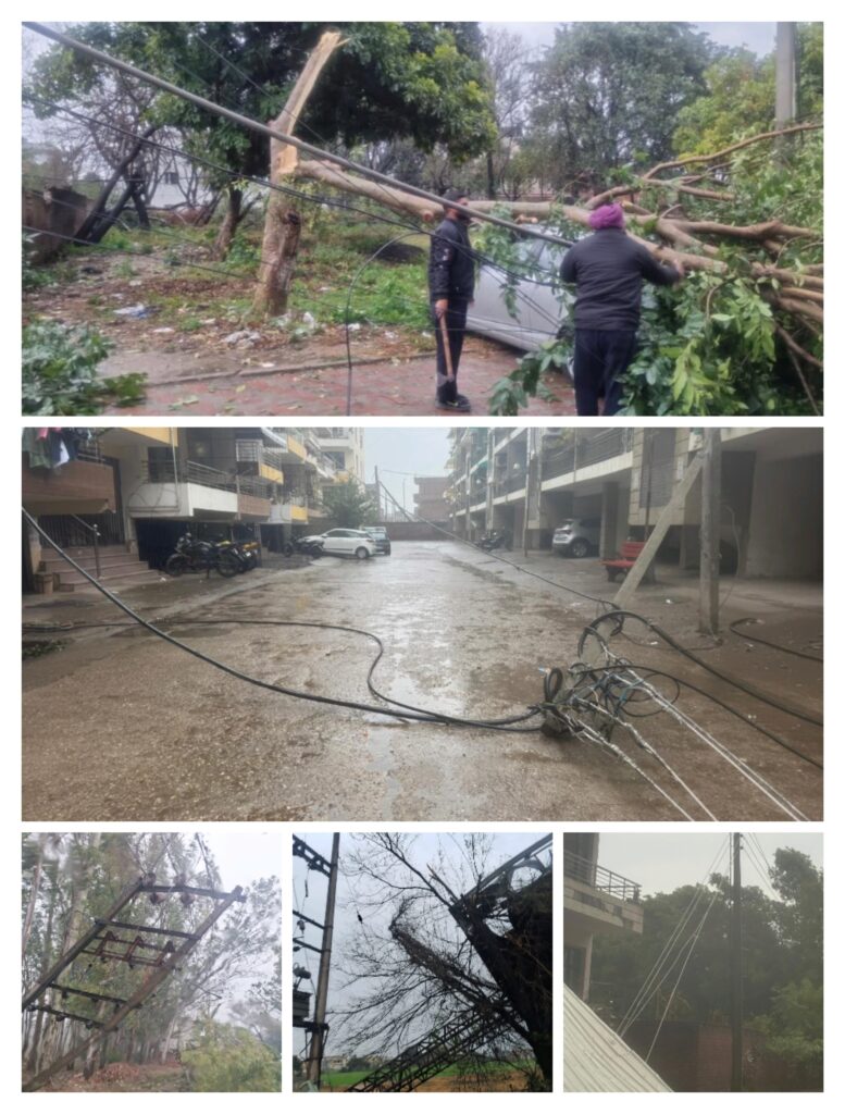 ਬਿਜਲੀ ਵਿਭਾਗ ਦੇ ਸਰਕਾਰੀ ਬੁਲਾਰੇ ਨੇ ਕਿਹਾ ਕਿ ਬਨੂੜ ਭਬਾਤ 66 ਕੇਵੀ ਲਾਈਨ ‘ਤੇ ਇੱਕ ਨਿਰਮਾਣ ਅਧੀਨ ਟ੍ਰਾਂਸਮਿਸ਼ਨ ਟਾਵਰ ਡਿੱਗ ਗਿਆ, ਜਿਸ ਕਾਰਨ ਜ਼ੀਰਕਪੁਰ ਖੇਤਰ ਵਿੱਚ ਸਪਲਆਈ ‘ਚ ਵੱਡਾ ਵਿਘਨ ਪਿਆ। ਪ੍ਰਾਪਤ ਰਿਪੋਰਟਾਂ ਅਨੁਸਾਰ ਰਾਜ ਵਿੱਚ ਲਗਭਗ 600 ਤੋਂ ਵੱਧ ਖੰਭੇ ਟੁੱਟਣ ਦੀ ਰਿਪੋਰਟ ਹੈ ਅਤੇ ਡਿਸਟ੍ਰੀਬਿਊਸ਼ਨ ਟ੍ਰਾਂਸਫਾਰਮਰਾਂ ਨੂੰ ਵੀ ਵੱਡਾ ਨੁਕਸਾਨ ਹੋਇਆ ਹੈ। ਪੀ.ਐਸ.ਪੀ.ਸੀ.ਐਲ. ਦੇ ਸਟਾਫ਼ ਨੇ ਸਪਲਾਈ ਨੂੰ ਬਹਾਲ ਕਰਨ ਲਈ ਦਿਨ ਭਰ ਮੁਸ਼ਕਲ ਹਾਲਾਤਾਂ ਵਿੱਚ ਕੰਮ ਕੀਤਾ।