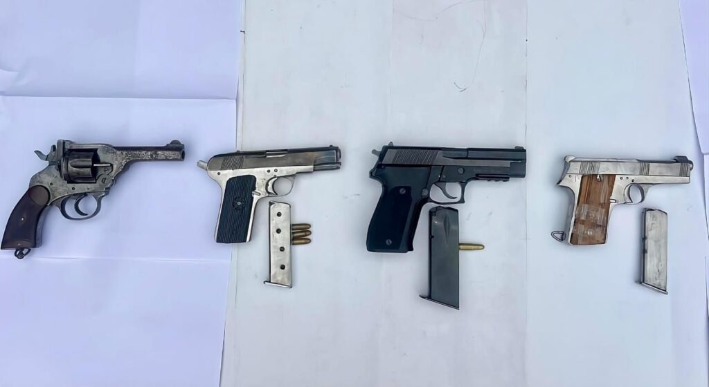 ਫੜੇ ਗਏ ਵਿਅਕਤੀਆਂ ਦੀ ਪਛਾਣ ਅਸਰਤ ਕੰਠ ਉਰਫ ਸਾਬੀ, ਕਮਲਪ੍ਰੀਤ ਸਿੰਘ ਉਰਫ ਕੋਮਲ ਬਾਜਵਾ, ਪਰਦੀਪ ਕੁਮਾਰ ਉਰਫ ਗੋਰਾ ਅਤੇ ਗੁਰਮੀਤ ਰਾਜ ਉਰਫ ਜੁਨੇਜਾ ਵਜੋਂ ਹੋਈ ਹੈ। ਪੁਲਿਸ ਟੀਮਾਂ ਨੇ ਚਾਰ ਹਥਿਆਰ ਬਰਾਮਦ ਕੀਤੇ ਹਨ ਜਿਨ੍ਹਾਂ ਵਿੱਚ ਇੱਕ ਚੀਨ ਦਾ ਬਣਿਆ 7.65 ਐਮਐਮ ਗਲਾਕ, ਦੋ .30 ਬੋਰ ਦਾ ਪਿਸਤੌਲ ਅਤੇ ਇੱਕ ਰਿਵਾਲਵਰ ਸਮੇਤ ਚਾਰ ਜਿੰਦਾ ਕਾਰਤੂਸ ਅਤੇ ਤਿੰਨ ਮੈਗਜ਼ੀਨਾਂ ਸਮੇਤ ਉਨ੍ਹਾਂ ਦੇ ਦੋ ਵਾਹਨ ਮਹਿੰਦਰਾ ਐਕਸਯੂਵੀ (ਪੀਬੀ-09-3039) ਅਤੇ ਬ੍ਰੇਜ਼ਾ (PB-09-ਈਪੀ-7100) ਵੀ ਜ਼ਬਤ ਕੀਤੇ ਹਨ, ਜਿੰਨਾ ਦੀ ਵਰਤੋਂ ਅਪਰਾਧ ਲਈ ਕੀਤੀ ਜਾ ਰਹੀ ਸੀ।