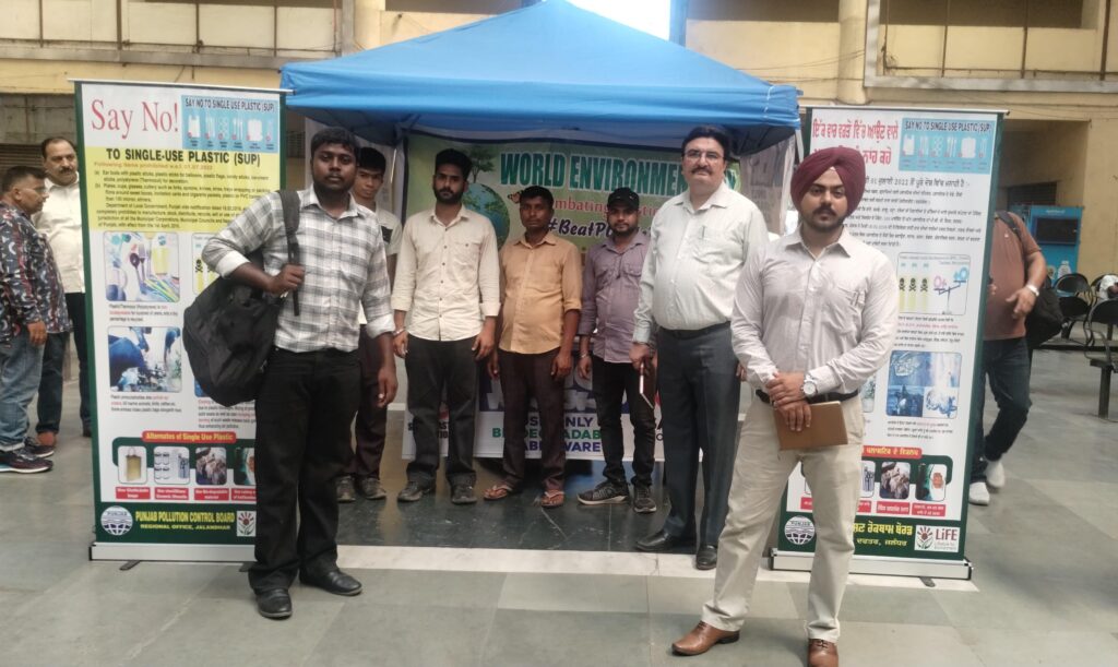ਇਨ੍ਹਾਂ ਗਤੀਵਿਧੀਆਂ ਦੀ ਲੜੀ ਤਹਿਤ ਪੰਜਾਬ ਪ੍ਰਦੂਸ਼ਣ ਕੰਟਰੋਲ ਬੋਰਡ ਦੇ ਖੇਤਰੀ ਦਫ਼ਤਰ-1 ਵੱਲੋਂ ਐਕਸੀਅਨ ਸੰਦੀਪ ਕੁਮਾਰ ਦੀ ਅਗਵਾਈ ਵਿੱਚ ਮੈ/ਸ ਓਮ ਪਲਪ ਪ੍ਰੋਡਿਊਸਿਜ਼ (ਬਾਇਓਡੀਗ੍ਰੇਡੇਬਲ ਟੇਬਲਵੇਅਰ ਮੈਨੂਫੈਕਚਰਿੰਗ ਯੂਨਿਟ) ਦੇ ਸਹਿਯੋਗ ਨਾਲ ਬੱਸ ਸਟੈਂਡ ਜਲੰਧਰ ਵਿਖੇ ਜਾਗਰੂਕਤਾ ਮੁਹਿੰਮ ਚਲਾਈ ਗਈ। ਮੁਹਿੰਮ ਦੌਰਾਨ ਐਸ.ਡੀ.ਓ. ਮਨਪ੍ਰੀਤ ਸਿੰਘ ਜੌੜਾ ਅਤੇ ਮਨਵਿੰਦਰ ਸਿੰਘ ਹੁੰਦਲ ਵੱਲੋਂ ਦੁਕਾਨਦਾਰਾਂ, ਰੈਸਟੋਰੈਂਟ ਮਾਲਕਾਂ ਅਤੇ ਯਾਤਰੀਆਂ ਸਮੇਤ ਆਮ ਲੋਕਾਂ ਨੂੰ ਇਕ ਵਾਰ ਵਰਤੋਂ ਵਿੱਚ ਆਉਣ ਵਾਲੇ ਪਲਾਸਟਿਕ ਦੇ ਵਿਕਲਪਾਂ ਜਿਵੇਂ ਬਾਇਓਡੀਗ੍ਰੇਡੇਬਲ ਟੇਬਲਵੇਅਰ ਬਾਰੇ ਜਾਗਰੂਕ ਕਰਦਿਆਂ ਵਾਤਾਵਰਣ ਪੱਖੀ ਵਸਤਾਂ ਨੂੰ ਅਪਣਾਉਣ ਲਈ ਪ੍ਰੇਰਿਤ ਕੀਤਾ ਗਿਆ।