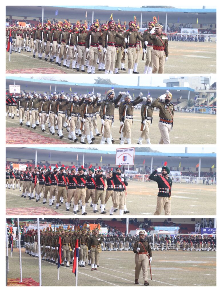 ਸ਼ਾਨਦਾਰ ਮਾਰਚ ਪਾਸਟ ਦੌਰਾਨ ਇੰਡੋ ਤਿਬਤੀਅਨ ਬਾਰਡਰ ਪੁਲਿਸ ਦੀ ਟੁਕੜੀ ਦੀ ਅਗਵਾਈ ਪਲਾਟੂਨ ਕਮਾਂਡਰ ਇੰਸਪੈਕਟਰ ਪੰਜਾਬ ਸਿੰਘ, ਪੰਜਾਬ ਪੁਲਿਸ ਦੀ ਟੁਕੜੀ ਦੀ ਅਗਵਾਈ ਪਲਾਟੂਨ ਕਮਾਂਡਰ ਏ.ਐਸ.ਆਈ. ਸੰਤੋਸ਼ ਕੁਮਾਰ, ਪੰਜਾਬ ਪੁਲਿਸ (ਮਹਿਲਾ ਵਿੰਗ) ਦੀ ਟੁਕੜੀ ਦੀ ਅਗਵਾਈ ਪਲਾਟੂਨ ਕਮਾਂਡਰ ਐਸ.ਆਈ. ਸੰਦੀਪ ਕੌਰ, ਪੰਜਾਬ ਹੋਮਗਾਰਡਜ਼ ਦੀ ਟੁਕੜੀ ਦੀ ਅਗਵਾਈ ਐਸ.ਆਈ.ਚਮਨ ਲਾਲ, ਸੈਕੰਡ ਪੰਜਾਬ ਬਟਾਲੀਅਨ ਐਨ.ਸੀ.ਸੀ. ਲੜਕਿਆਂ ਦੀ ਟੁਕੜੀ ਦੀ ਅਗਵਾਈ ਪਲਾਟੂਨ ਕਮਾਂਡਰ ਚੇਤਨ ਪਾਸੀ, ਸੈਕੰਡ ਪੰਜਾਬ ਬਟਾਲੀਅਨ ਐਨ.ਸੀ.ਸੀ. ਲੜਕੀਆਂ ਦੀ ਟੁਕੜੀ ਦੀ ਅਗਵਾਈ ਪਲਾਟੂਨ ਕਮਾਂਡਰ ਕੋਮਲ, ਲਾਇਲਪੁਰ ਖਾਲਸਾ ਸਕੂਲ ( ਲੜਕੇ) ਦੀ ਟੁਕੜੀ ਦੀ ਅਗਵਾਈ ਪਲਾਟੂਨ ਕਮਾਂਡਰ ਹੈਵਨ, ਸਰਕਾਰੀ ਕੰਨਿਆ ਸੀਨੀਅਰ ਸੈਕੰਡਰੀ ਸਕੂਲ ਨਹਿਰੂ ਗਾਰਡਨ ਸਕੂਲ ਦੀ ਗਰਲਜ਼ ਗਾਈਡਜ਼ ਦੀ ਟੁਕੜੀ ਦੀ ਅਗਵਾਈ ਪਲਾਟੂਨ ਕਮਾਂਡਰ ਅਨਾਮਿਕਾ, ਡੀ.ਐਸ.ਐਸ.ਡੀ. ਸਕੂਲ ਦੇ ਸਕਾਊਟਸ ਦੀ ਟੁਕੜੀ ਦੀ ਅਗਵਾਈ ਪਲਾਟੂਨ ਕਮਾਂਡਰ ਰਿੱਕੀ ਯਾਦਵ, ਲਾਇਲਪੁਰ ਖਾਲਸਾ ਸਕੂਲ (ਲੜਕੀਆਂ) ਦੀ ਟੁਕੜੀ ਦੀ ਅਗਵਾਈ ਪਲਾਟੂਨ ਕਮਾਂਡਰ ਰਾਗਿਨੀ ਅਤੇ ਸੀ.ਆਰ.ਪੀ.ਐਫ. ਦੇ ਬੈਂਡ ਦੀ ਅਗਵਾਈ ਪਲਾਟੂਨ ਕਮਾਂਡਰ ਐਸ.ਆਈ. ਹੇਮ ਰਾਜ ਵਲੋਂ ਕੀਤੀ ਗਈ।