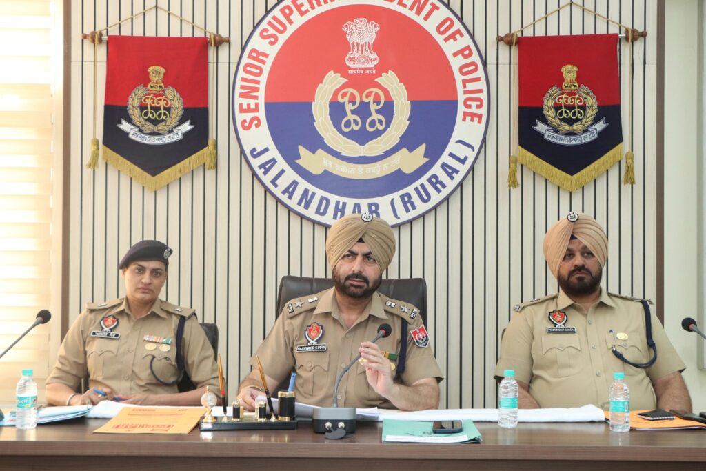 ਜਲੰਧਰ: ਐਸ.ਐਸ.ਪੀ.(ਜਲੰਧਰ ਦਿਹਾਤੀ) ਸ਼੍ਰੀ ਹਰਵਿੰਦਰ ਸਿੰਘ ਵਿਰਕ ਵਲੋਂ ਅੱਜ ਇਕ ਵਿਸ਼ੇਸ਼ ਅਤੇ ਮਹੱਤਵਪੂਰਨ ਉੱਚ ਪੱਧਰੀ ਮੀਟਿੰਗ ਕੀਤੀ ਗਈ। ਮੀਟਿੰਗ ਵਿੱਚ ਪਰਮਿੰਦਰ ਸਿੰਘ ਹੀਰ ਐਸ.ਪੀ ਹੈੱਡ ਕੁਆਰਟਰ, ਮਨਜੀਤ ਕੌਰ ਐਸ.ਪੀ, ਪੀ.ਬੀ.ਆਈ, ਸਾਰੇ ਗਜਟਿਡ ਅਫਸਰ, ਐਸ.ਐਚ.ਓਜ਼ ਅਤੇ ਚੌਂਕੀ ਇੰਚਾਰਜ ਸ਼ਾਮਲ ਹੋਏ।