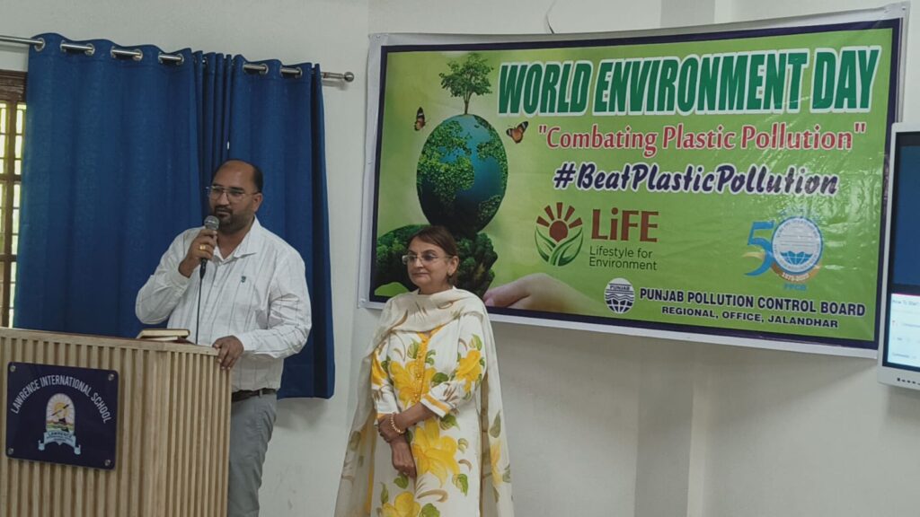 ਜਲੰਧਰ, 17 ਮਈ : ਪੰਜਾਬ ਪ੍ਰਦੂਸ਼ਣ ਕੰਟਰੋਲ ਬੋਰਡ (ਪੀ.ਪੀ.ਸੀ.ਬੀ.), ਖੇਤਰੀ ਦਫ਼ਤਰ-1, ਜਲੰਧਰ ਵੱਲੋਂ ਵਿਸ਼ਵ ਵਾਤਾਵਰਣ ਦਿਵਸ-2025 ਮੌਕੇ ਸਥਾਨਕ ਲਾਰੈਂਸ ਇੰਟਰਨੈਸ਼ਨਲ ਸਕੂਲ ਵਿਖੇ ਵਿਸ਼ੇਸ਼ ਜਾਗਰੂਕਤਾ ਸਮਾਗਮ ਕਰਵਾਇਆ ਗਿਆ।