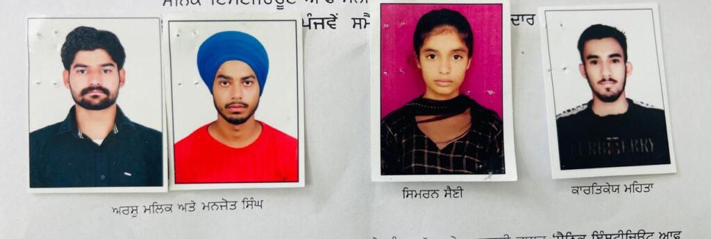 ਉਨ੍ਹਾਂ ਅੱਗੇ ਦੱਸਿਆ ਕਿ ਇਸੇ ਤਰ੍ਹਾਂ ਬੀ.ਐਸ.ਸੀ.(ਆਈ.ਟੀ) ਦੇ ਪੰਜਵੇਂ ਸਮੈਸਟਰ ਵਿੱਚ ਅਰਸ਼ੁ ਮਲਿਕ ਅਤੇ ਮਨਜੋਤ ਸਿੰਘ ਨੇ 7.87 ਐਸ.ਜੀ.ਪੀ.ਏ. ਲੈ ਕੇ ਪਹਿਲਾ ਸਥਾਨ ਪ੍ਰਾਪਤ ਕੀਤਾ ਜਦਕਿ ਸਿਰਮਨ ਸੈਣੀ ਨੇ 7.83 ਐਸ.ਜੀ.ਪੀ.ਏ. ਲੈ ਕੇ ਦੂਜਾ ਅਤੇ ਕਾਰਤਿਕੇਯ ਮਹਿਤਾ ਨੇ 7.70 ਐਸ.ਜੀ.ਪੀ.ਏ. ਲੈ ਕੇ ਤੀਜਾ ਸਥਾਨ ਹਾਸਿਲ ਕੀਤਾ ਹੈ। ਉਨ੍ਹਾਂ ਵਿਦਿਆਰਥੀਆਂ ਨੂੰ ਸ਼ਾਨਦਾਰ ਨਤੀਜੇ ਹਾਸਿਲ ਕਰਨ ‘ਤੇ ਵਧਾਈ ਦਿੰਦਿਆਂ ਭਵਿੱਖ ਵਿੱਚ ਹੋਰ ਵੀ ਸਖ਼ਤ ਮਿਹਨਤ ਕਰਨ ਲਈ ਪ੍ਰੇਰਿਤ ਕੀਤਾ।